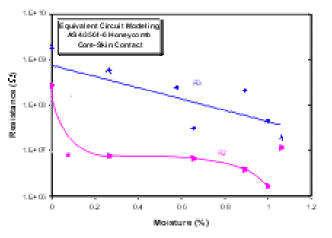 Correlation of moisture-sensitive circuit elements with moisture content in the AS4/3501-6 honeycomb composite sample.