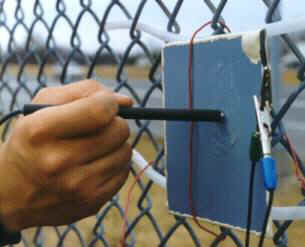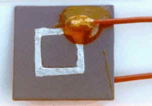 Painted aluminum test specimen with an attached in-situ corrosion sensor.