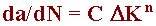 da/dN = The rate of crack growth per cycle (m/cycle)