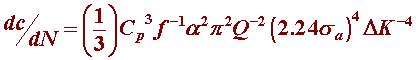 The pit growth rate dc/dN was developed using DK relation as given below: