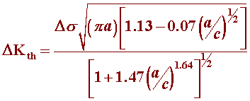 where, DKall can be determined from a da/dN vs. DK plot for a material, hmax is the maximum pit depth, and F is a geometric factor.